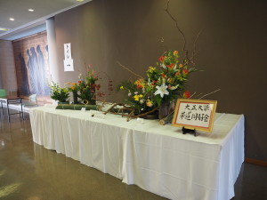 休憩時間には、お茶によるご接待を茶道部の学生にお願いし、また華道同好会には生け花を展示してもらい、会場を華やかにして頂きました。その他多くの方々のご協力により大盛況の中、公演を終えることができました。