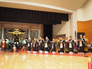 今年度の声明公演では恵心僧都を鑽仰して、天台宗の浄土信仰をよりどころとする「常行三昧」、「十二礼念仏回向法要」を執り行いました。