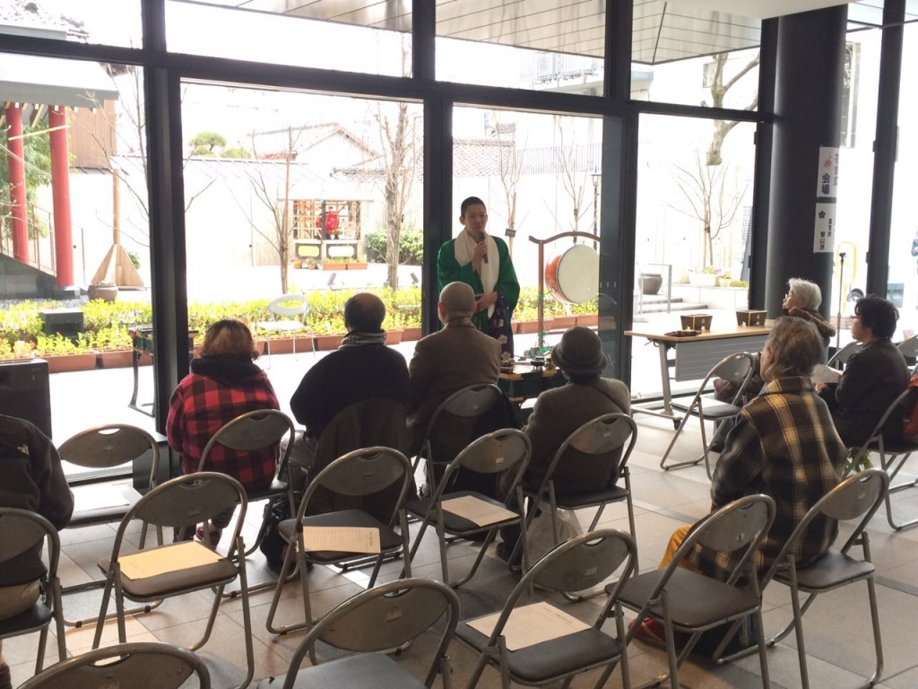この「花会式」という法要は、いつも当大正大学のブログをご覧の方はご存知のこととおもいます。すがも鴨台観音堂を道場として、大正大学の設立宗派であります、天台宗・真言宗豊山派・真言宗智山派・浄土宗に時宗を加えた五宗派の学生が中心となり、日ごろの法式研鑚の成果を実践する場として、特色を活かした法要と法話をしていただいております。今回は智山派が担当させて頂きました。法要に出仕してくれたのは、智山派に属する学部生と院生の皆さんです。今回の導師ならびに法話の講師つとめたのは、博士後期課程に所属する院生の鈴木雄太さんにお勤め頂きました。