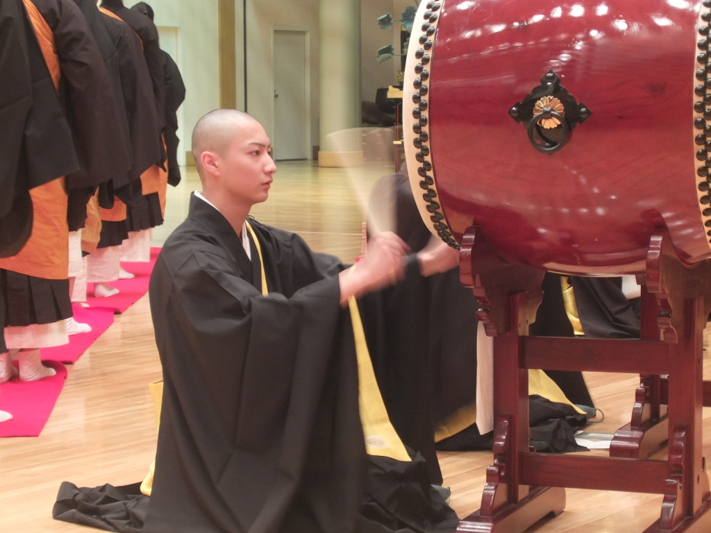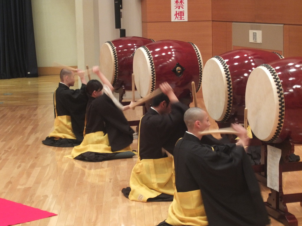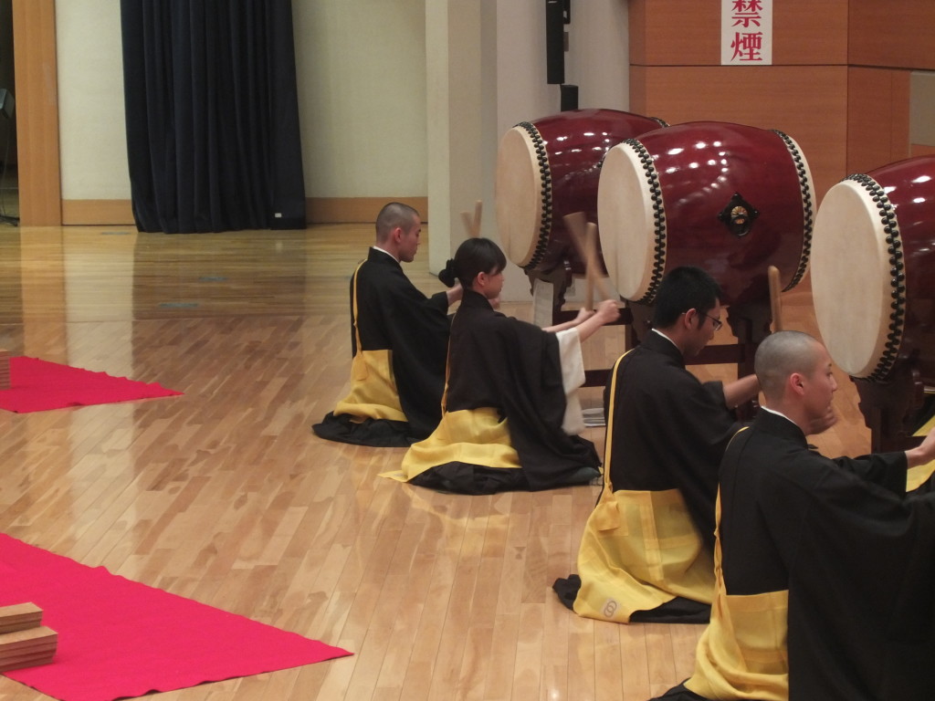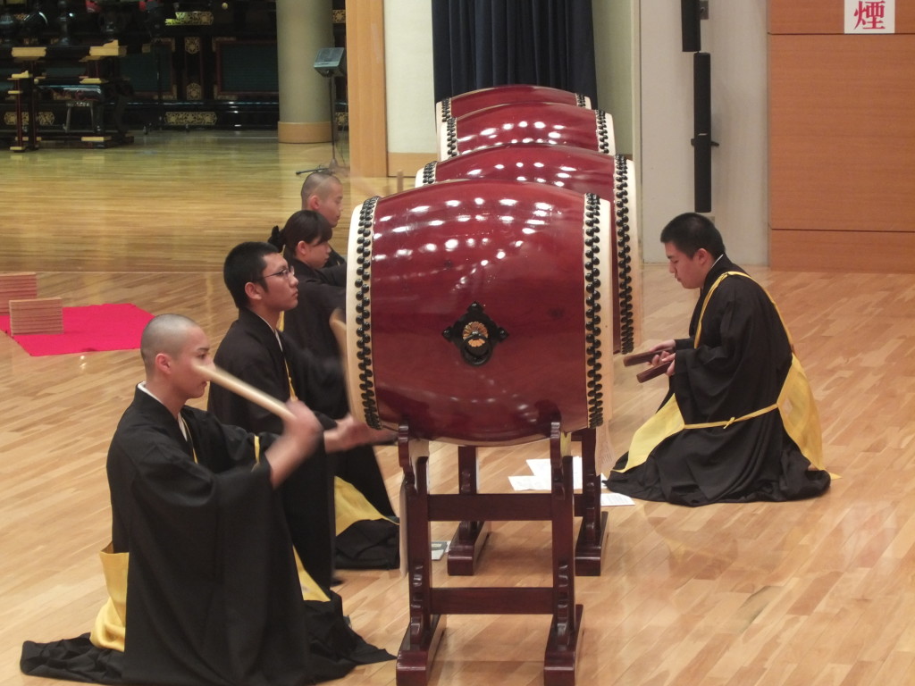 学生が退堂する際には、太鼓で「六大響」の演奏も…