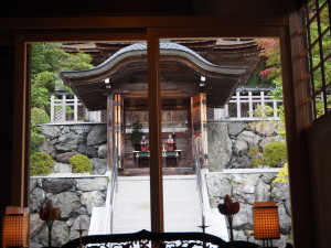 真然大徳は、弘法大師の高弟であり、大師より高野山の運営を任された方です。そして、真然大徳は真言宗学の研鑽の場である高野山伝法会を始行された方なのです。その御廟を拝しながら、研究発表ができるというのはやはり高野山ならではです。上の写真が発表会場からみた真然大徳御廟、下の写真が御廟の正面からのものになります。
