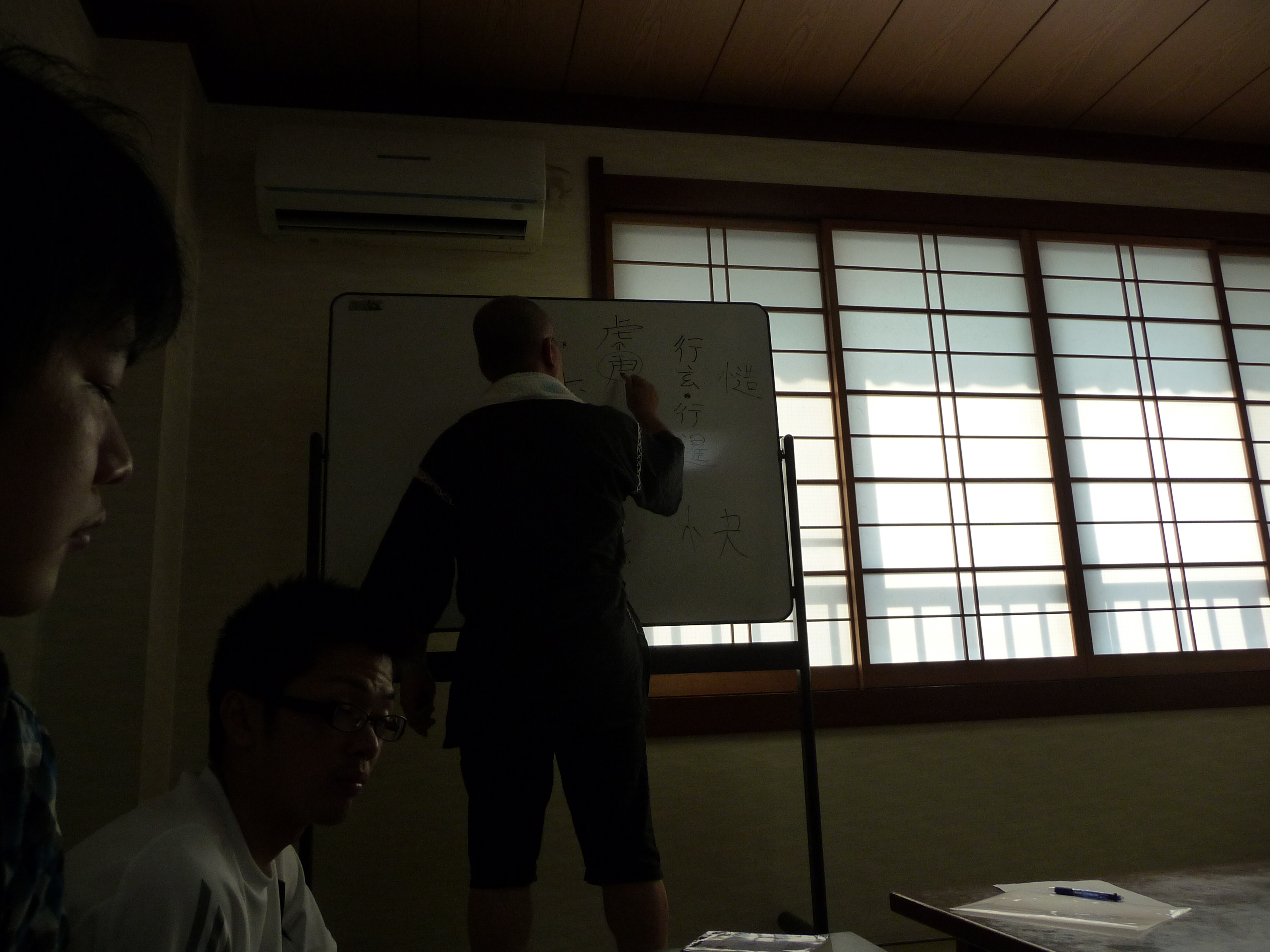 日射しの明るい室内で、オリジナルテキストによる先生の講義が始まりました。