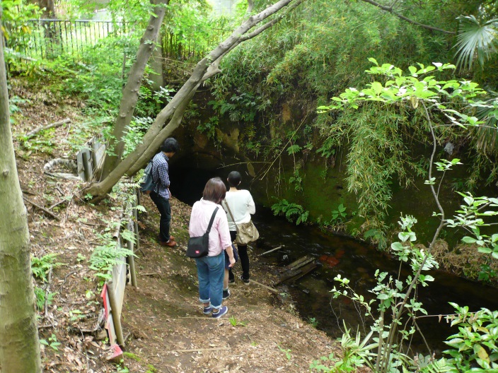 ▲胎内堀り:シールド工法(たぬき堀り)によって掘られた小川用水(分水)トンネルの出口。