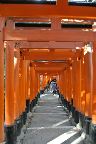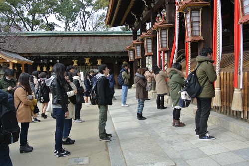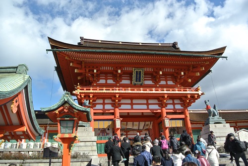 最後に向かったのは、伏見稲荷大社。全国に約30,000あるといわれる稲荷神社の総本社で、千本鳥居で有名な神社です。当日は、希望者が境内にある稲荷山に登り、そこから見える京都の景観および京都における宗教観を学びました。