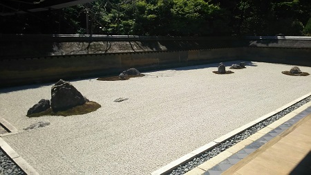 なんといっても、龍安寺といえば石庭です。皆さんも写真等で見たことはあるかもしれませんが、実際に見るとその美しさに圧倒されてしまいました。