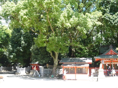 この神社の拝殿の後ろ側には樟で覆われた「生田の森」が広がっています。