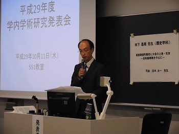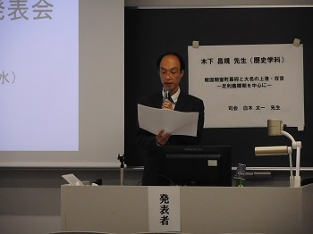 発表会には、歴史学科の先生方や大学院史学専攻の院生が参加し、木下先生の発表を聞いていました。