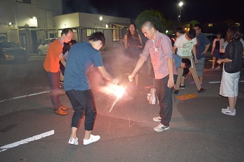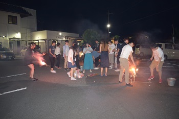 木下先生・三浦先生の講義、引率の大学院生による指導、さらには学生の発表などでお疲れの皆さんへささやかなご褒美(?)として、2日目の夜に花火大会を行いました。