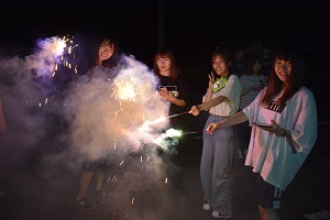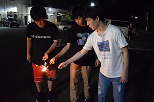 朝から夜まで勉強というハードな合宿ですが、大変なことばかりではありません。2日目の夜には、花火大会を楽しみました。