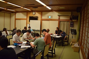 また、夕食の後にも学生全員に院生・OBによる熱心な指導があります。指導を通して、世代を超えた交流も生まれました。学生にとって良い刺激になったのではないでしょうか。