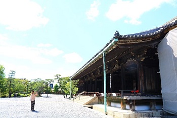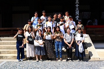 9月8日(日)最終日ですが、巨大台風接近により、新幹線が止まるかもしれないというニュースが流れました。この日のうちに帰らなければならない人もいるので、全員一緒の見学は三十三間堂だけとなりました。
