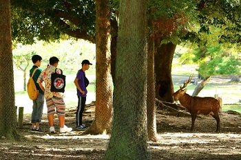 次に目指したのは春日大社ですが、一の鳥居から本殿・拝殿までの道は延々と続き、猛暑の中、難行苦行の行進でした。しかし、途中鹿やアイスに癒やされながら、脱落者無く、無事たどり着くことができました。