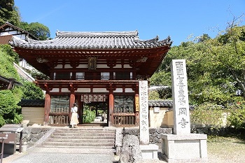飛鳥寺から岡寺に移動の途中、伝飛鳥板蓋宮跡(浄御原宮跡)に立ち寄りました。岡寺は山腹にあるため、急勾配の坂を登るのは結構大変でしたが、皆元気に登り切りました。