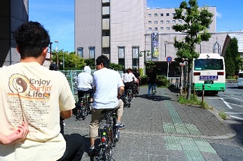 9月7日(土)二日目は、飛鳥の遺跡巡りです。橿原神宮前のレンタサイクル屋から自転車で出発です。
