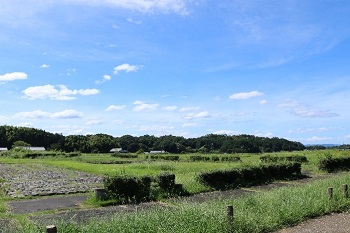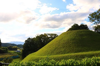 2日目最後の見学先は、高松塚古墳です。橘寺から高松塚古墳に向かう途中で天武・持統合葬陵も遠望しました。高松塚古墳では、壁画館の前でユウユウの説明を皆で聞きました。高松塚古墳を見た後は、近くにある文武天皇陵も見に行きました。二日連続の猛暑でしたが、体調を壊す人も無く、無事見学できたことは良かったです。
