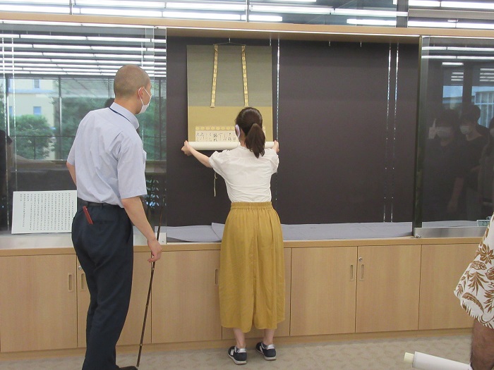 箱の開け方、紐の解き方、掛け軸の開き方など、手順を1つ1つ実演も含めて解説されました。