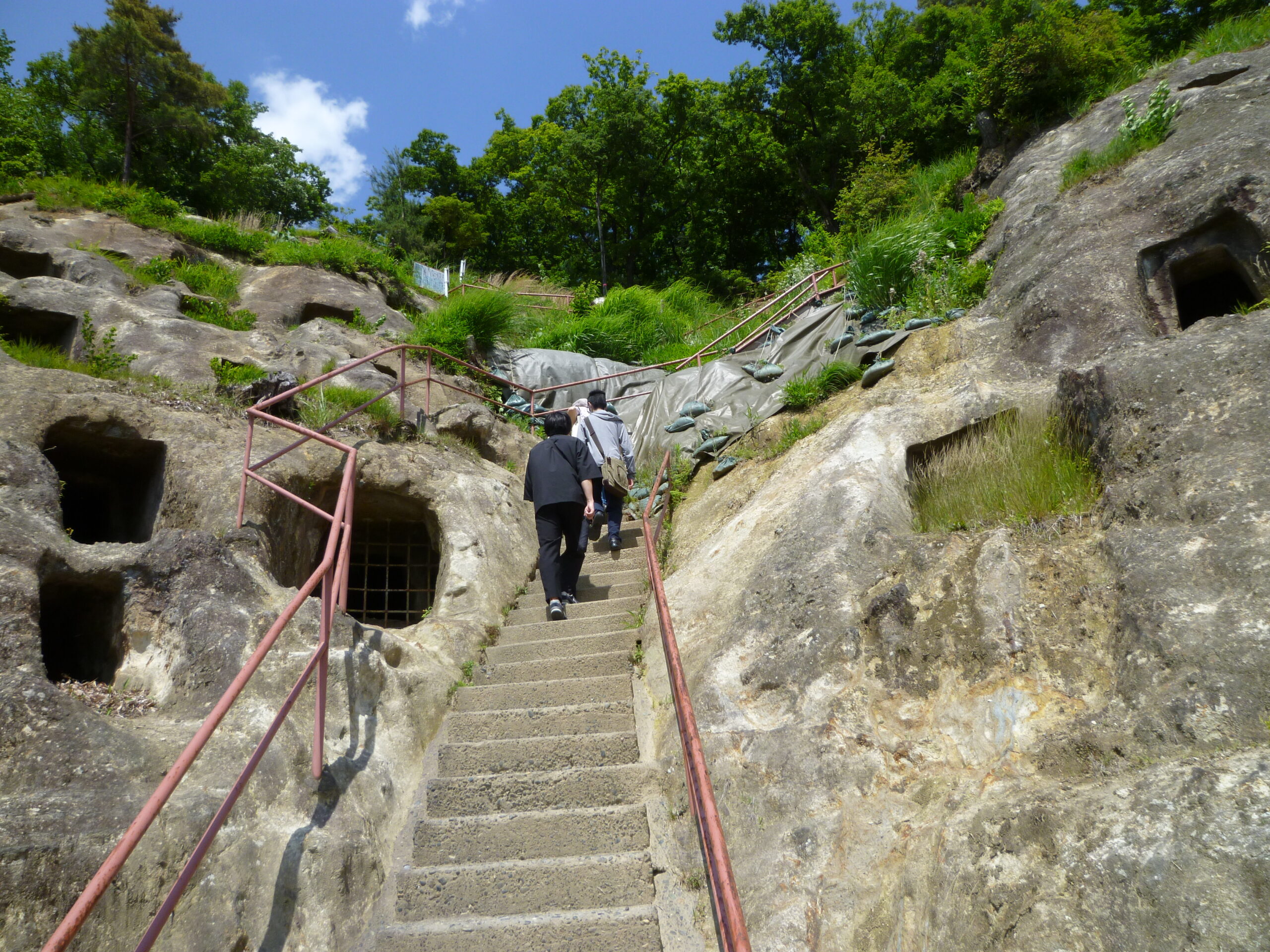 吉見丘陵の山の斜面に200以上の横穴墓が群集している様は圧倒的な光景であり、一見の価値があります。