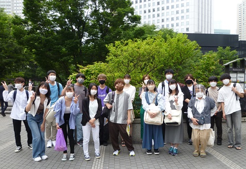 歴史基礎ゼミナールⅠを受講している1年生16名・3年生1名と教員1名で、西新宿の新宿住友ビル内にある