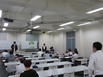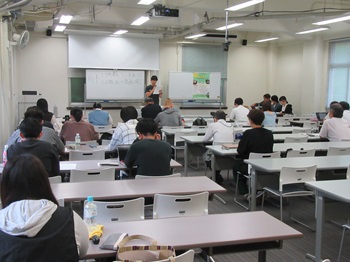 当日は、卒業論文の全体構想、現在の進捗状況、今後の課題などについて、7人の4年生が発表を行いました。会場には約30名の学生さんのほか、本学名誉教授の原芳生先生・福井淳先生もかけつけていただき、活発な討論がなされました。発表会の後は、学生食堂で懇親会を行い、交流を深めました。運営は5人の学生さんたちが行いました。