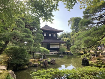 その後、義政の山荘であった、通称「銀閣寺」こと慈照寺まで移動しました。現在でも義政時代の東求堂や観音殿(銀閣)などが