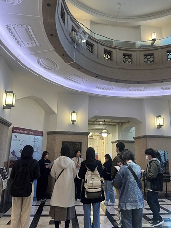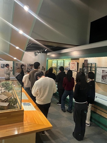 博物館実習の学外授業として、文京ふるさと歴史館を見学しました。学芸員の加藤さんから館内の説明を受け、