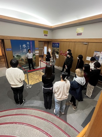 博物館実習の学外授業として、港区立郷土歴史館を見学しました。学芸員の野口さんから館内の説明を受け、バックヤードも