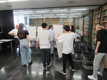 準備のためにゼミ生たちが集まり、設営作業をしました。
