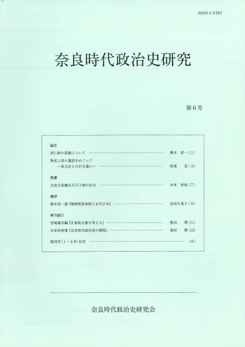 「淳仁朝の恩赦について」が掲載された『奈良時代政治史研究』第6号が奈良時代政治史研究会より発行されました。