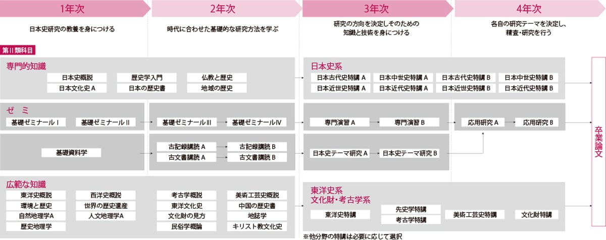 鎌倉時代、室町時代、戦国時代について主に研究します。3人の専任教員で各時代を指導するため、学生は自らの興味に基づき専門的に学ぶことができます。毎年、武士による戦乱や各地の戦国大名、現代社会と大きく異なる中世社会の様々な出来事などをテーマをとして卒業論文を執筆します。