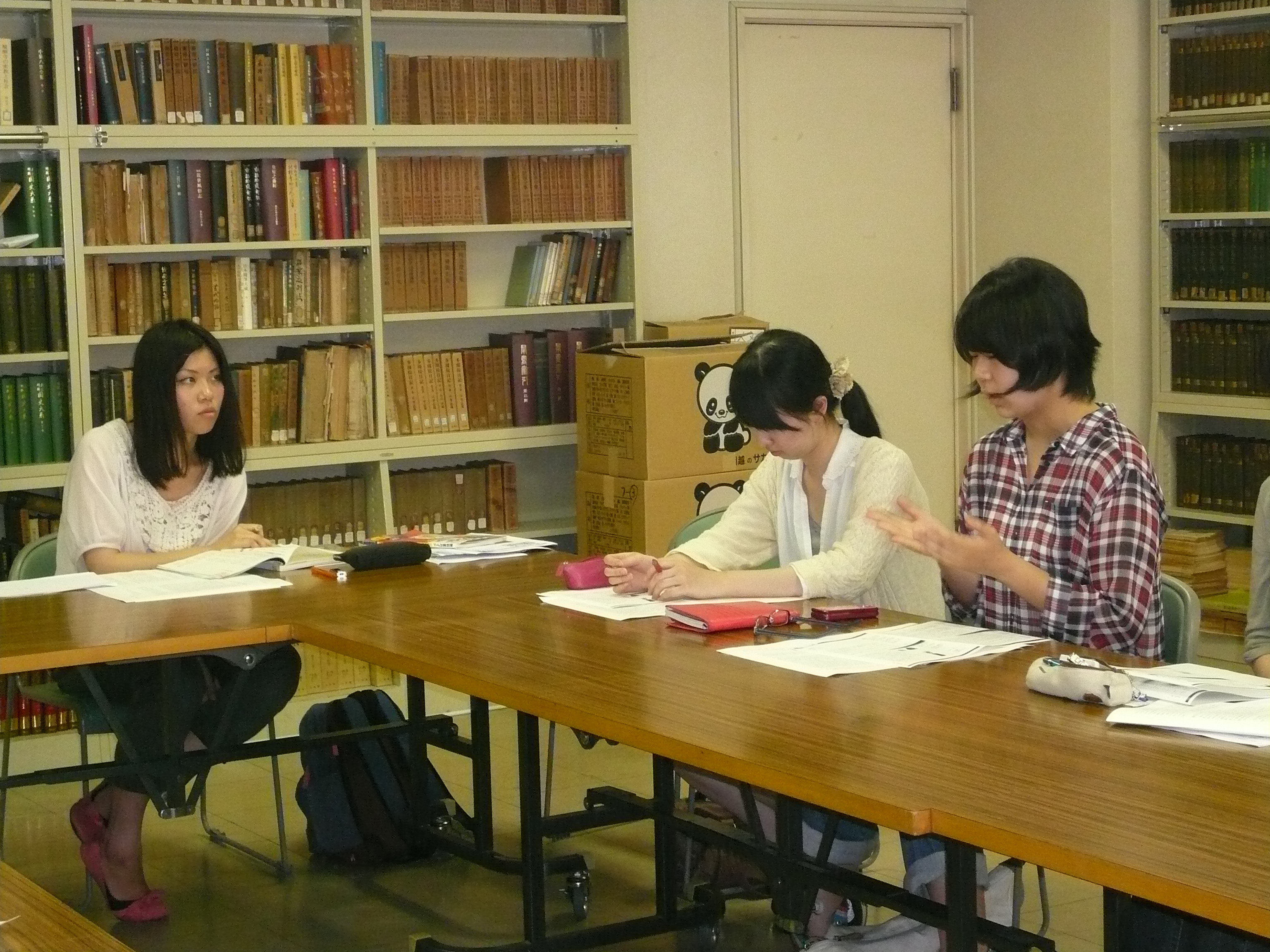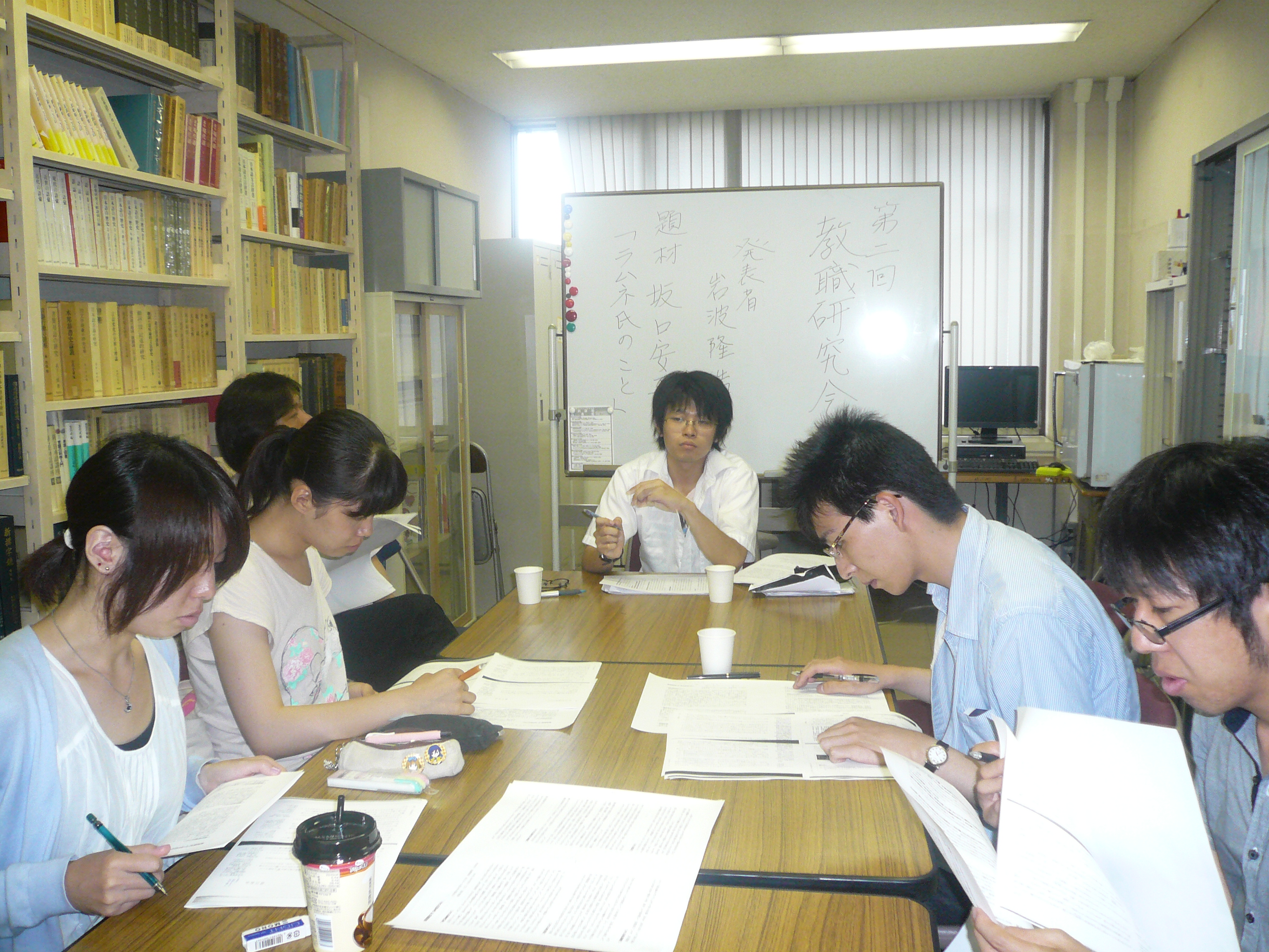 写真は1学年下の3年生を中心とした「出藍会」(教職研究会)の様子です。
