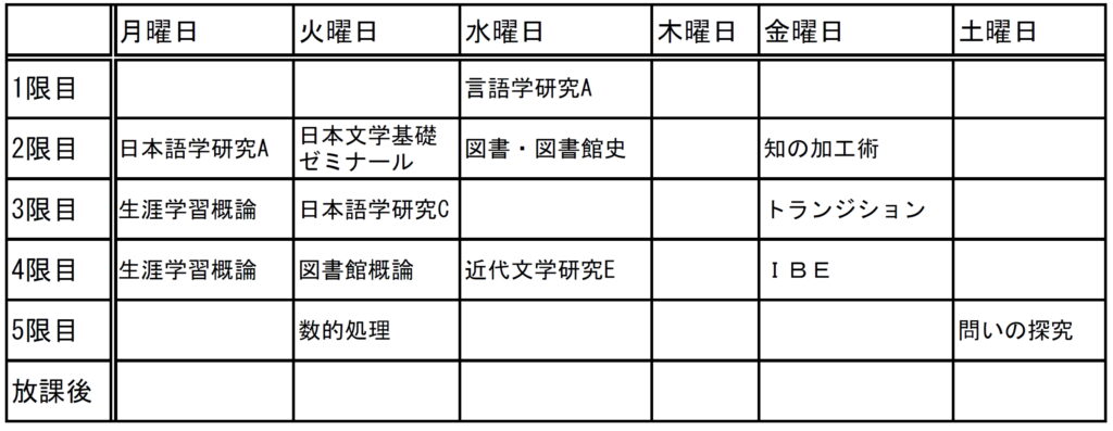 ◆大学開講中の時間割や空いた時間の過ごし方(休日を除く)