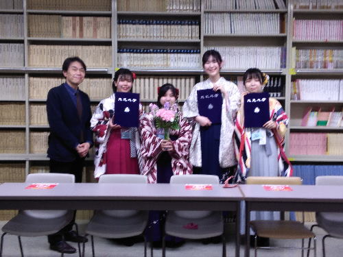 先週、2019年度卒業の卒業生4名が袴姿で、大正大学を訪れてくれました。この学年は新型コロナウィルスの流行がはじまった年に卒業を迎え、式典すべてが中止になってしまった学年です。せめて学位記を持ち袴姿で大学の正門で写真をとりたいという思いが、ずっと心にあったそうです。昨年はまだコロナウィルスの状況が思わしくなく見送りとなり、今年2年越しに実現できたとのことでした。 |