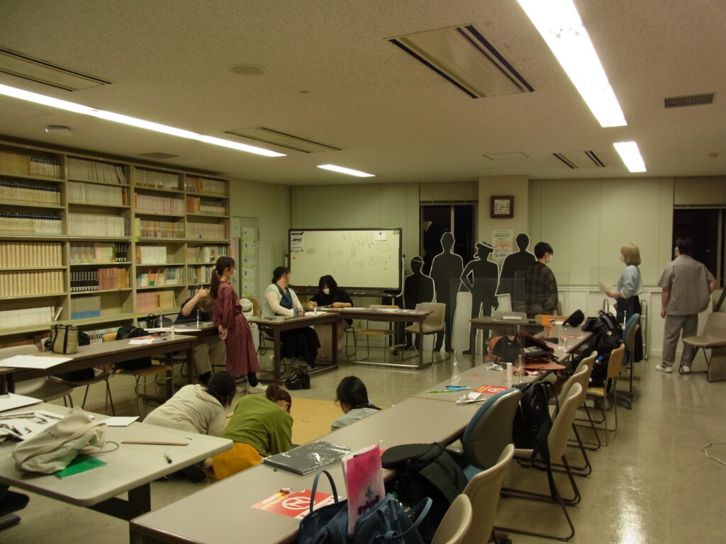 | 日本文学科では学生の企画展示や実演などを中心に、学科企画で鴨台祭に参加します。2号館7階の日本文学科の研究室フロアで開催しますので、日本文学や日本語にご興味のある方はぜひお越しください。 普段は一般に開放しないフロアや学科の閲覧室を使った展示ですので、受験生の方も足をお運びいただければと思っています。 右の写真は鴨台祭を準備する学生有志の様子です。奥のシルエットは一体……? どうぞお楽しみに! |