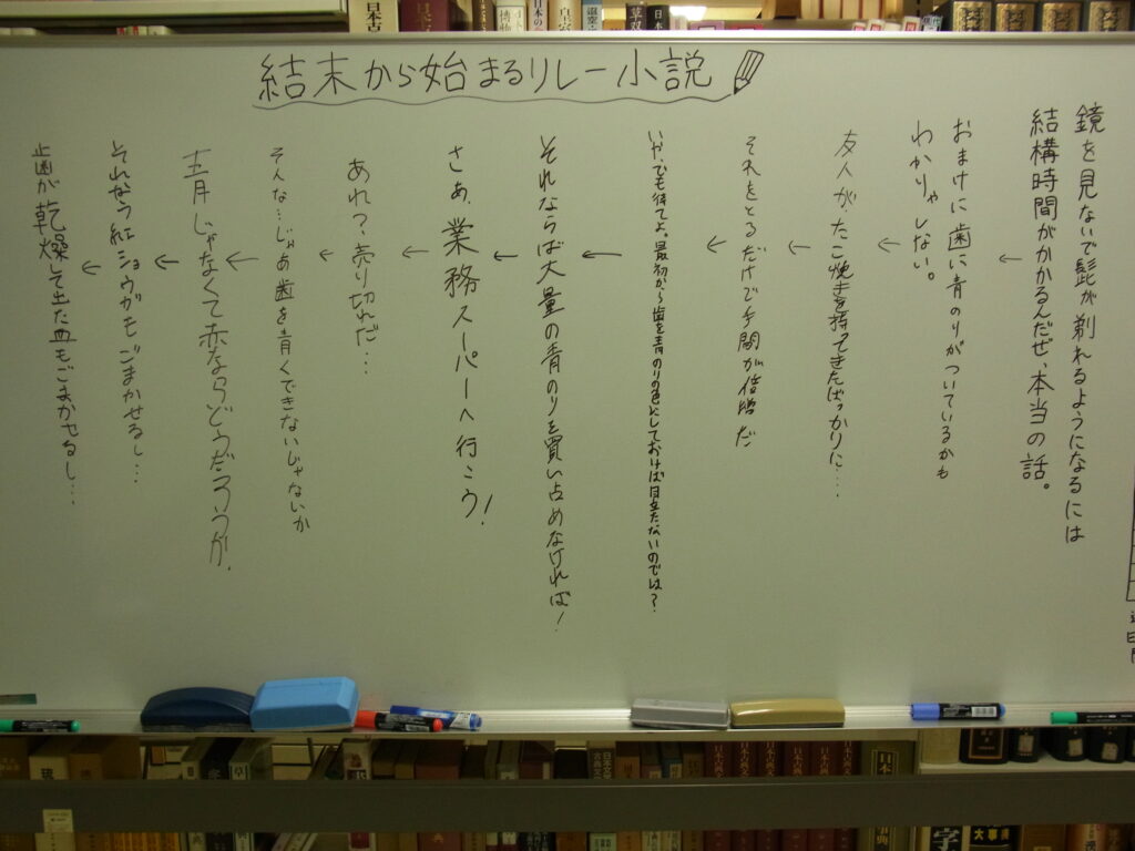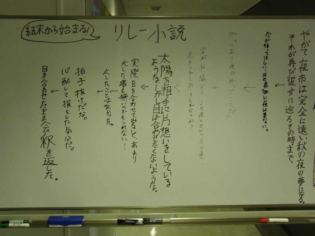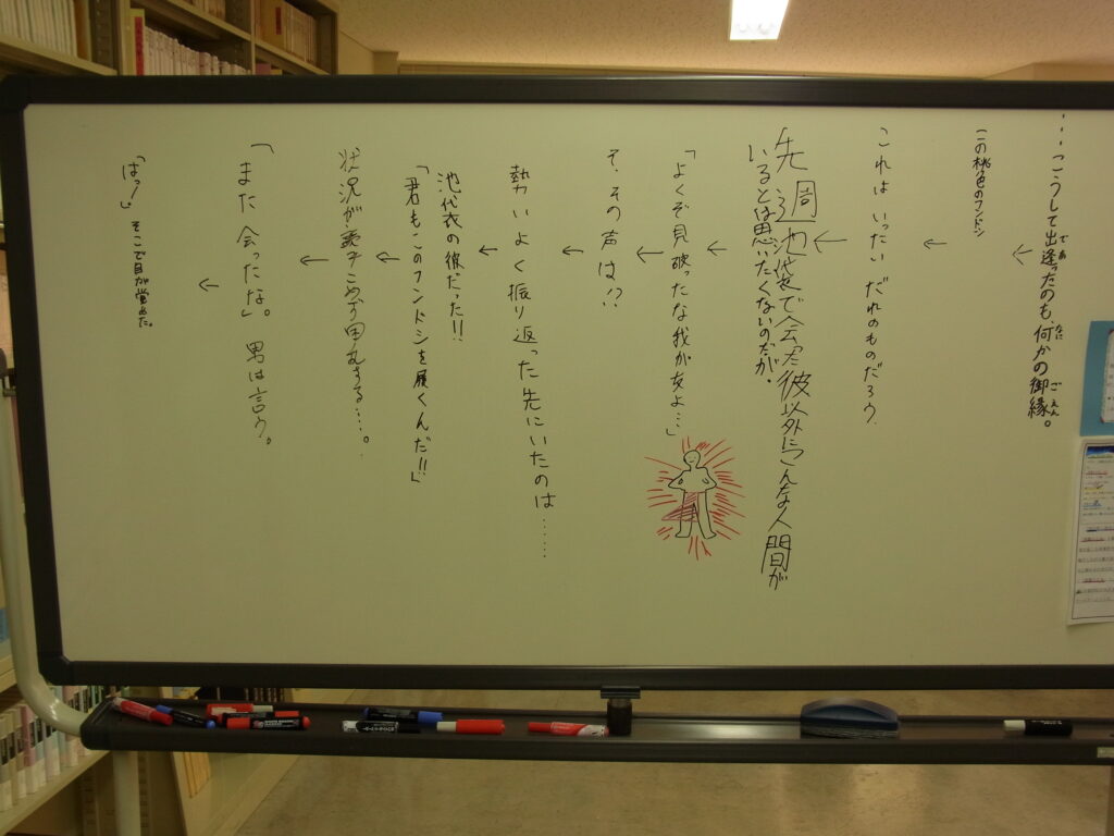 ![]() 結末から始まるリレー小説、第二号の結果、その1です。この後どうなってしまうのでしょうか。 |