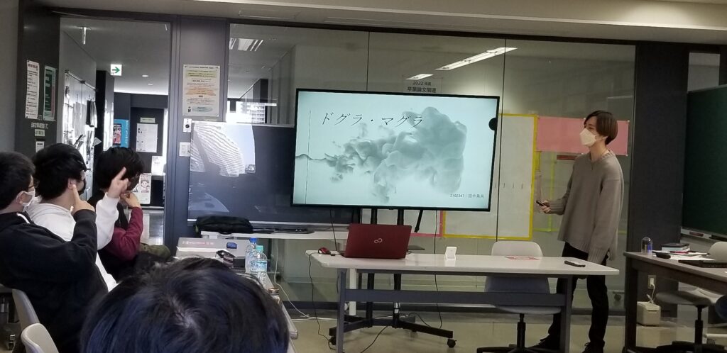 ![]() 【写真2】近現代文学分野のプレゼンの様子(2) ![]() 【写真3】近現代文学分野のプレゼンの様子(3) |