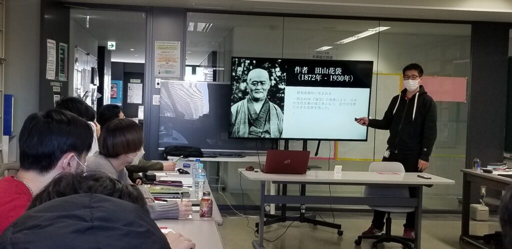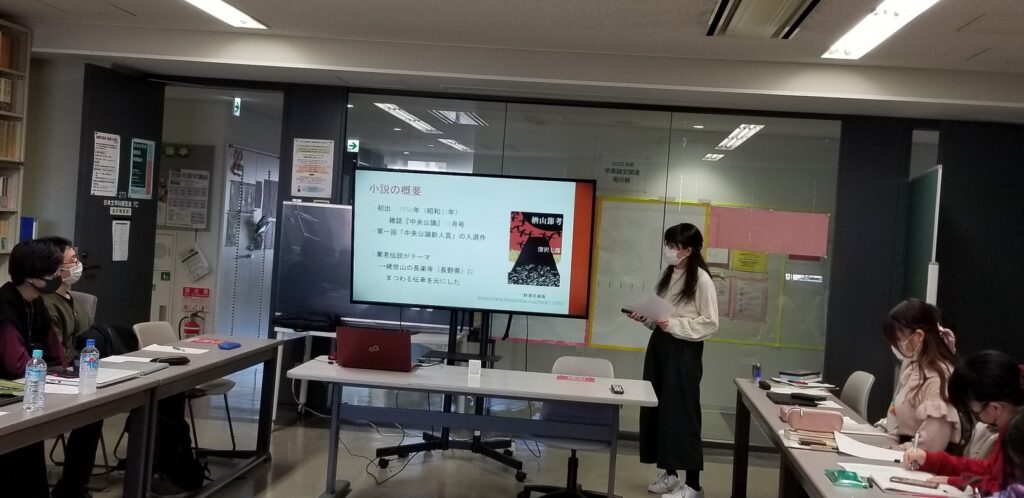![]() 【写真1】近現代文学分野のプレゼンの様子(1) |