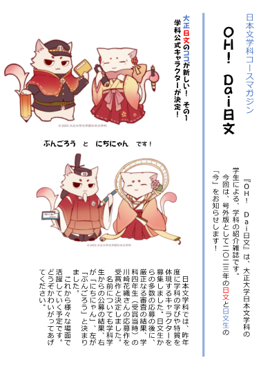| 大正大学文学部日本文学科では今後も様々な形で学科の魅力をお伝えしていく予定です。日本文学科公式Twitterもありますので、ぜひフォロー・拡散のほど、よろしくお願いします。 | |