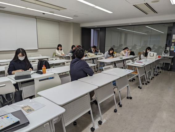 三枚めの写真は、教室終了後のミーティングの様子です。その日の学習の様子を報告しあい、上手くいった点や行かなかった点について共有し、今後の運営に活かしていきます。学生に運営が任されてまだ日が浅いのですが、内容の濃い意見交換が行われており、学生サポーターたちのさらなる飛躍が感じられたうれしい瞬間でした。 |