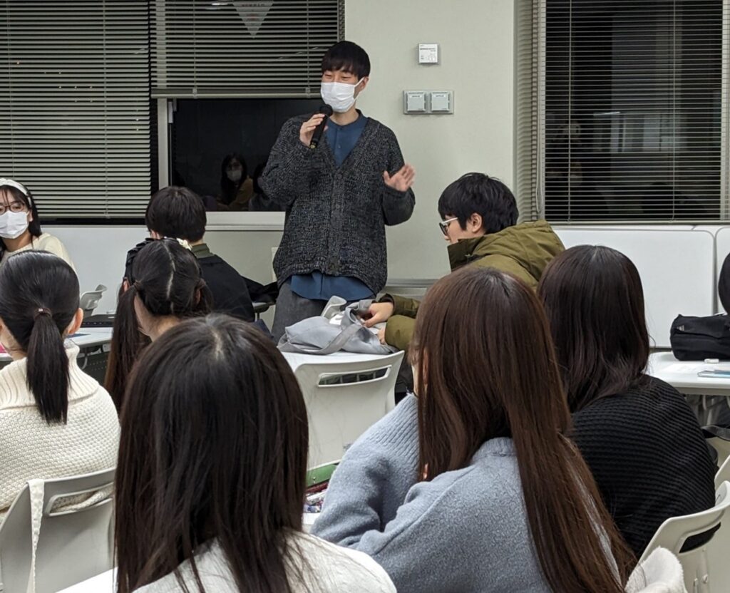 ![]() 素敵なイベントを提案してくれた4年生のみなさん、そして、あの場と時間を共有してくださった参加者のみなさん、ありがとうございました。参加した4年生も、機会さえあれば卒業の3月までにまた開催したい! とのことで、楽しんで登壇してくれたようです。ぜひそうした機会を見つけていきたいですね。 |