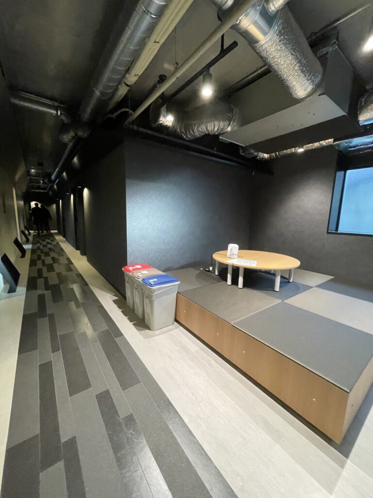 ![]() 学生さんが撮影したお部屋の中。お部屋は全て個室で、合宿所なのでベッドメイキングなどは自分で行う必要がありますが、机、エアコン、鏡、ハンガーなどは揃っているとのことでした。 ![]() 学生さんが撮影されたお部屋の外。食事や懇談のスペースとして活用できたとのことでした。 |
