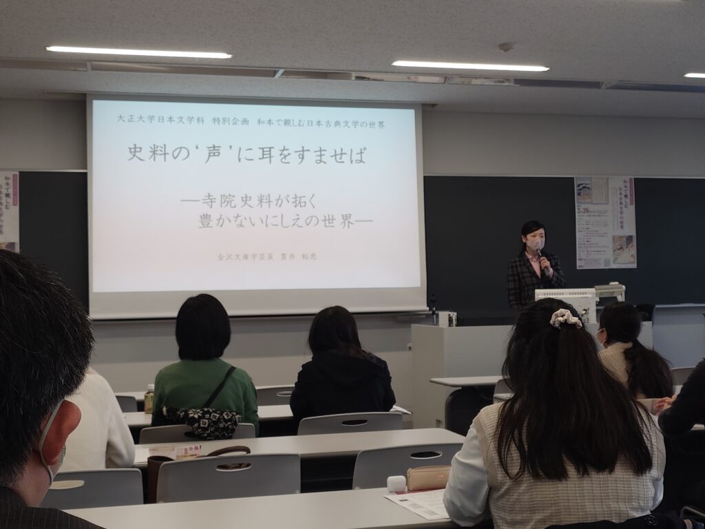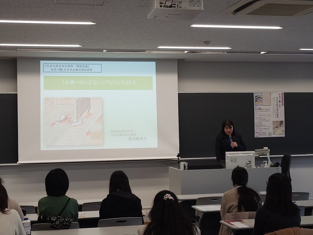 2024年2月26日(月)に、大正大学日本文学科は「古典へのいざない」プロジェクトの一環として、特別企画「和本で親しむ日本古典文学の世界」を開催しました。 |