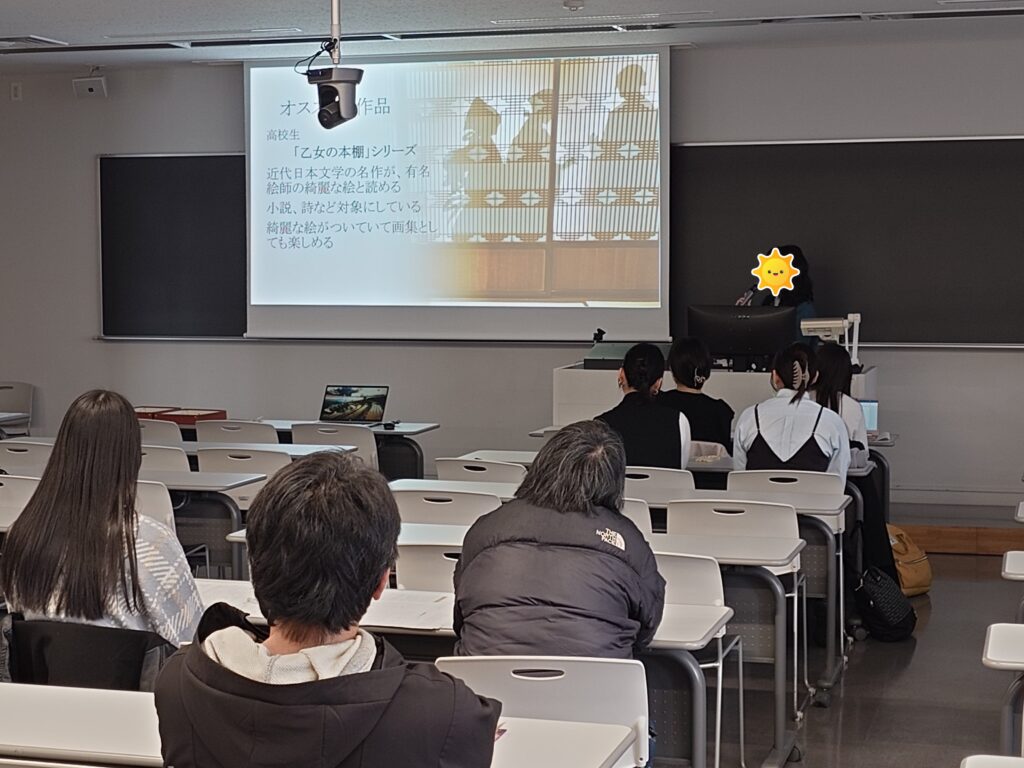 | 2番目の企画「推しも好きだけど、近代文学も好き――推し活する私たちが語る近代文学の魅力――」では、普段は現代の様々な娯楽を「推し」ている近代文学ゼミの4年生が、近代文学を卒業論文でどのように取り上げて研究し、その魅力をどこに発見することができたのかを語ってくれました。大正大学において、楽しく近代文学を学んできた成果を感じさせるプレゼンテーションでした。来場者アンケートにおいても、「普段の学生生活と共に、どんな勉強と研究の成果が出たのかお話ししてもらえてよかった」というご感想をいただきました。 3番目の企画「大正大学日本文学科で古典文学・近代文学を学ぶ意義と楽しさ」では、前半で大正大学日本文学科を学生目線で紹介し、後半は学生同士で大正大学日本文学科を選んだ決め手、楽しかった授業について話をしてもらいました。生き生きとした学生の様子がとても印象的であったと思います。 ![]() 【協力学生の皆さんと記念撮影】 今回の企画を通じて受験生の皆さんに見ていただきたかったのは、大正大学日本文学科に在籍する学生の皆さんが、何を楽しく学んで、何をできるようになったかということでした。くずし字を読むこと・教えること、あるいは物怖じせずにプレゼンテーションを行うこと……。何をとっても、どの学生さんも最初からできることではなかったはずです。立派にその成長した姿と成果を見せてくれたように思います。その姿を、受験生の皆さんの数年後の姿としてイメージしてもらえたらよいなと考えています。 大正大学文学部日本文学科では今後も様々な形で学科の魅力をお伝えしていく予定です。日本文学科公式SNSも随時更新中ですので、ぜひフォロー・拡散のほど、よろしくお願いします。 |