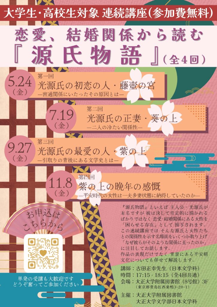 【大正大学附属図書館企画】恋愛、結婚関係から読む『源氏物語』のお知らせ【日本文学科】