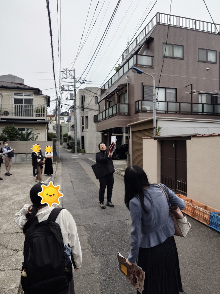 特に、芥川龍之介の最期を看取った下島勲旧邸近くの解説をうかがってから、実際に芥川旧邸まで歩いたことで、当日の朝の様子に思いを馳せる学生も多かったようでした。文豪がその場に生き、執筆し、そして亡くなっていったことが実感できるような素晴らしいご案内であったと思います。 芥川龍之介旧邸の一部は、2026年度北区によって「(仮称)芥川龍之介記念館」が建設予定ですが、今夏に建設予定地に芥川龍之介の家が建っていた場所に印をつけたとのことで、黄色いテープでその区画の一部をイメージすることができるようになっていました。記念館が建った後には見られない状況かと思いますので、こちらも良い体験になりました。 石川先生、貴重なご案内と解説とをありがとうございました! また、田端文士村記念館の学芸員やスタッフの皆さまにおかれましても、お世話になりました。 学生たちはこの後、見学したことと実際の文学作品を考え合わせてレポートを書いて、発表することになっています。引き続きがんばっていきましょう。 |