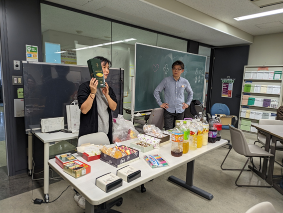 ドッヂボール、百人一首それぞれの上位グループには、賞品も出ました。ここは日本文学科らしく文豪にちなんだお菓子や、方言で名づけられているお菓子が登場しました。教員たちはここで張り切って、賞品として選んだお菓子を紹介しました。 |