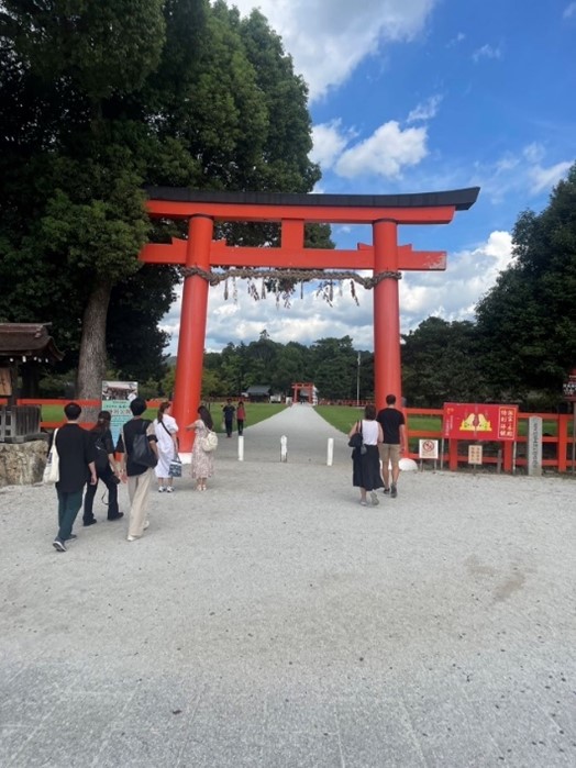 大正大学には、「ゼミ合宿」の制度があります。このゼミ合宿は大学からの宿泊などの補助を得て、授業期間外に体験的な学びを得ることを目的として行うことができるものです。授業期間外とはいっても、実施する場合には演習などの授業の一環としての取り組みですので、ゼミごとの目的にそって設けられた課題などにも取り組みながら、各自の研究課題にもリンクさせて活動を行ってます。 〔京都研修1日目〕2024年9月19日(木) 日本文学科古典ゼミ(中世文学ゼミ)の3.4年生のメンバーと担当教員で京都に行きました。1日目に訪問した寺社の説明や、実際に足を運んだ感想や見所について書いていきます。 まず、初めに向かったのが上賀茂神社です。上賀茂神社は、寺伝によると天武天皇六年(677年)に創建され、国宝2棟と重要文化財41棟を含む広大な敷地が、ユネスコ世界文化遺産に登録されている神社です。また多くの寺社のある京都でも歴史の古い神社で、賀茂氏の氏神として祀られたのが始まりです。 上賀茂神社に行ってみて1番に感じたのが敷地の広大さです。祈祷殿に行くまでに大鳥居、一の鳥居、二の鳥居、そして楼門があり、周りを見渡すと敷地が広がっていました。 |