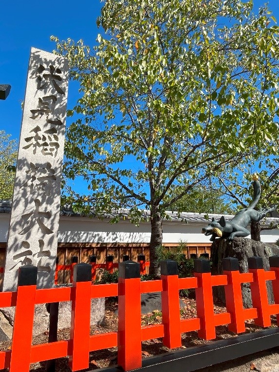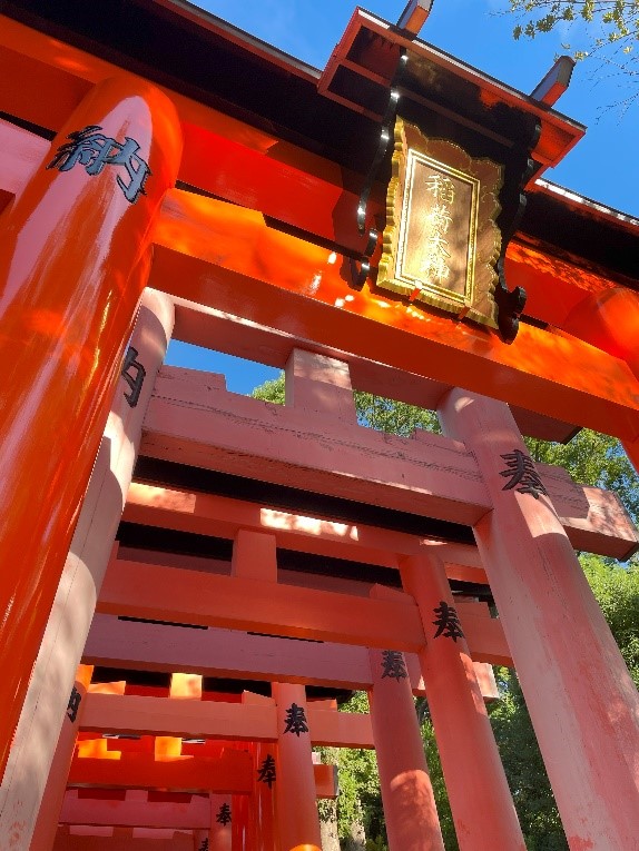 | 源融邸は、当時とても広大な敷地面積を誇っていた邸宅です。この源融は邸宅の庭園に関しての面白いエピソードが色々あるので、こちらも興味のある方はぜひ調べてみてください! 私が印象に残っているエピソードは、すぐそばに鴨川が流れているのですが、屋敷の庭に歌枕の「陸奥の塩竃」を再現するために、大阪湾から船で海水を運ばせたというものです。 最後の目的地、伏見稲荷大社に到着です(写真4枚目)! ここでは特別拝観をさせていただきました。社務所の中では、御宝物の刀剣を間近で見せていただいたり、神職の方のお話を聞かせていただきました。 ![]() またその後、拝殿にてご祈祷をしていただき、神楽殿の舞台に上がり、神楽の奉納をさせていただきました。神楽を至近距離で見ることができる、本当に貴重な機会でした。その後は神職の方のご案内で境内をまわり、有名な千本鳥居を通りながら稲荷山を登りました(写真5枚目)。 ![]() |