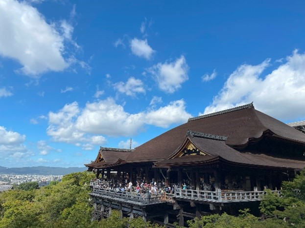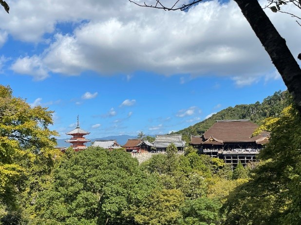 中世文学ゼミのゼミ合宿、全3回中2回目の記事です。 〔京都研修2日目〕2024年9月20日(金) ゼミ合宿2日目です。 8時30分にホテルを出発し、最初の目的地の清水寺に向かいます! この日は朝からとても暑く、最初のバス停にたどり着くまででも少し大変でした。修繕工事が完了した綺麗な舞台で、観光客の方が多くいらしていました(写真1枚目)。また、渡辺先生が教えてくださった場所から写真を撮ると、舞台と五重塔などを一枚に収めることができました(写真2枚目)。 ![]() ![]() |