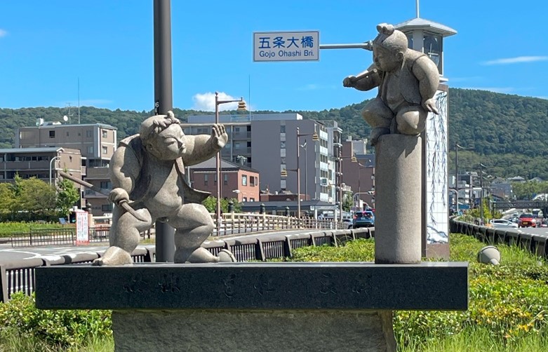 | 次に向かったのは六波羅蜜寺です。ここでは写真撮影はできませんでしたが、空也上人立像の実物を見ることができました(*宝物館内は、撮影禁止です)。 六波羅蜜寺を後にして、五条大橋と源融邸跡に向かいます。 五条大橋は源義経と弁慶が出会った橋として有名な橋です。しかし、当時と現在では何やら違いがあるようです。気になる方は調べてみてくださいね! 五条大橋の前にあるこの義経と弁慶の像は、伏見人形風にデザインされているため、このような丸みを帯びたかわいらしい見た目をしているそうです。 ![]() |