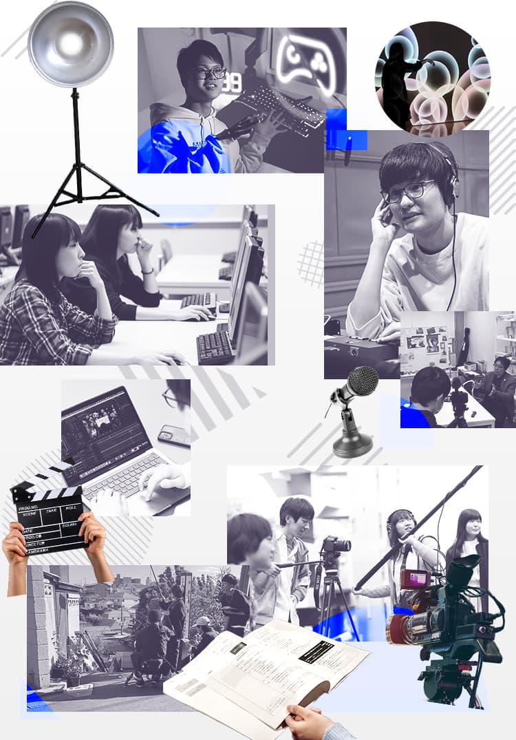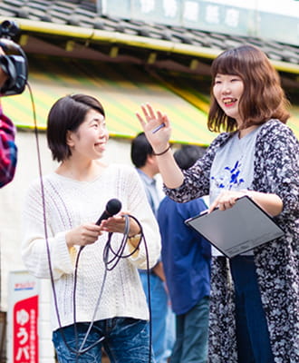 放送や映画、Webなどの現場で活躍する教員指導のもと、制作活動を通じて実践的な授業を行います。制作された成果物に対して教員は「授業課題として」ではなく「一作品として」プロ目線での講評を行います。それを踏まえて学生たちは互いに議論し、悩みながら表現することを通して、クリエイティビティを高めます。